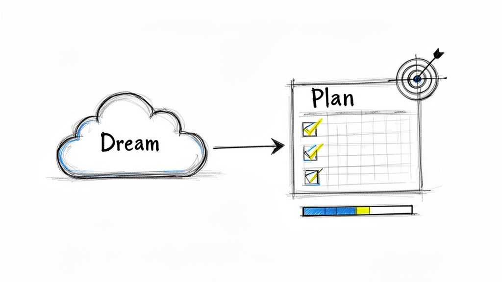 Alright, you've got your shiny new template, and it’s a blank canvas. This is where the magic really happens. A goal-planning template is just a tool; its real power comes from the system you build inside it. Let's walk through how to connect a big, ambitious goal to the small, daily actions that actually make it happen.