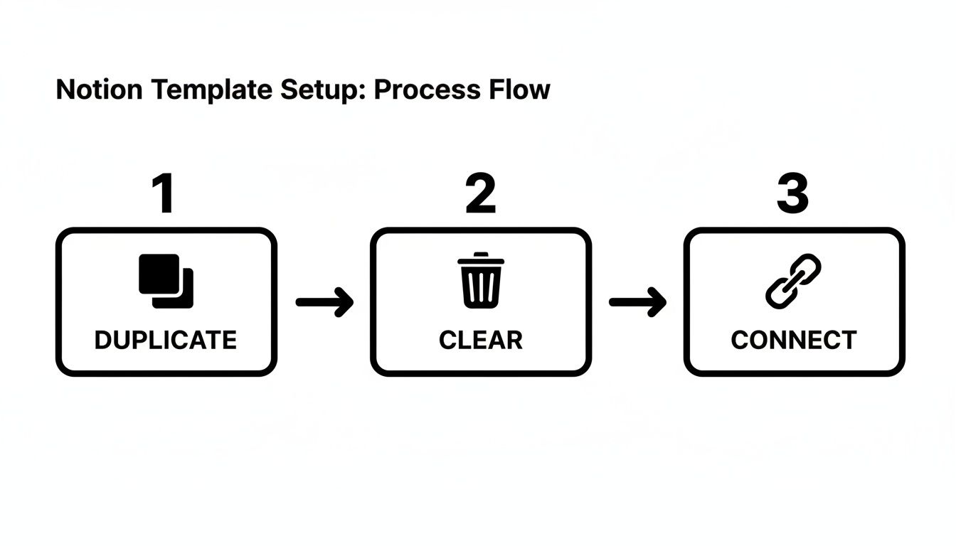 First things first, you need to bring the template into your own Notion environment. Whether you found it in Notion’s official gallery, a creator's store like Flowtion, or a community forum, the process is pretty much the same. You're basically making a personal copy that you can bend, break, and rebuild however you like without touching the original.