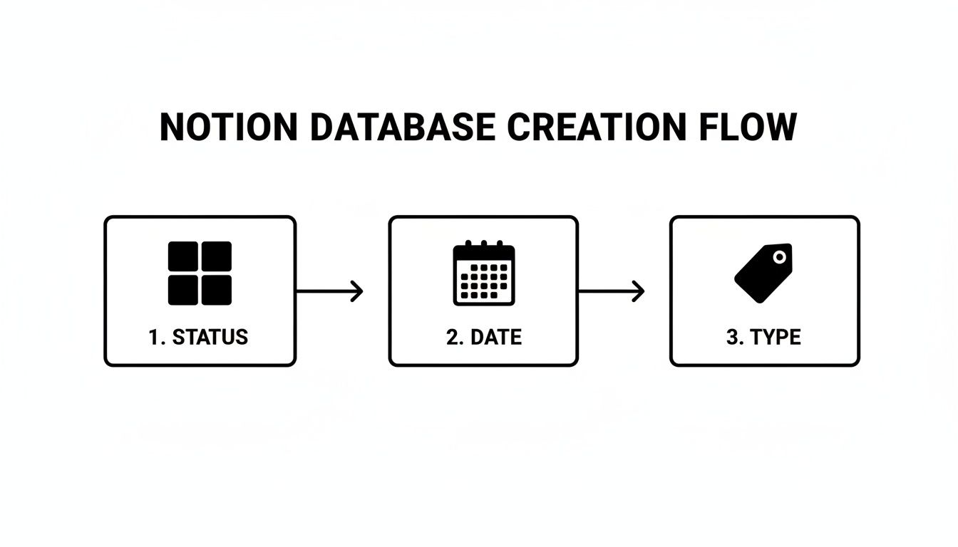 Think of it like building the frame of a house. Before you can even think about paint colors or furniture, you need a solid, well-planned structure. Your Notion database is that frame.